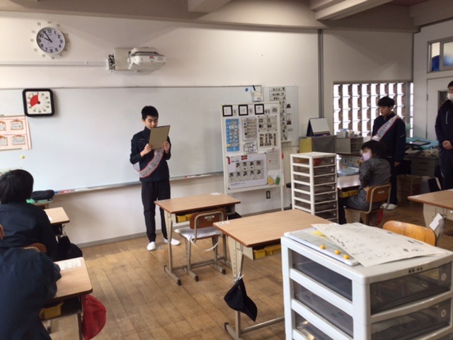 また、児童集会で節分の豆まきをしました。豆の代わりにお花紙を小さく丸めて、当たっても痛くないようにして豆まきをしました。今年も悪いもの=邪気(鬼)を追い払い、健康に過ごすために、「鬼は外」の掛け声を練習してから豆まきをしました。最後の片付けまで、みんなで協力して行うことができました。