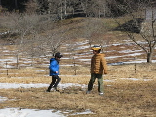 小学部では、毎週金曜日に学年混合のチームで「山歩き」に出かけます。春夏秋冬さまざまな姿を見せてくれる自然の中で、四季の美しさを感じながら歩いています。グループによって距離は違いますが、長い距離を歩くことで、体力や忍耐力も養われ、身体機能の向上を図ることもできます。今回は雪の残る芝生広場まで歩き、遊んで帰って来ました。途中で休憩も挟みながら、しっかりと最後まで歩くことができました。