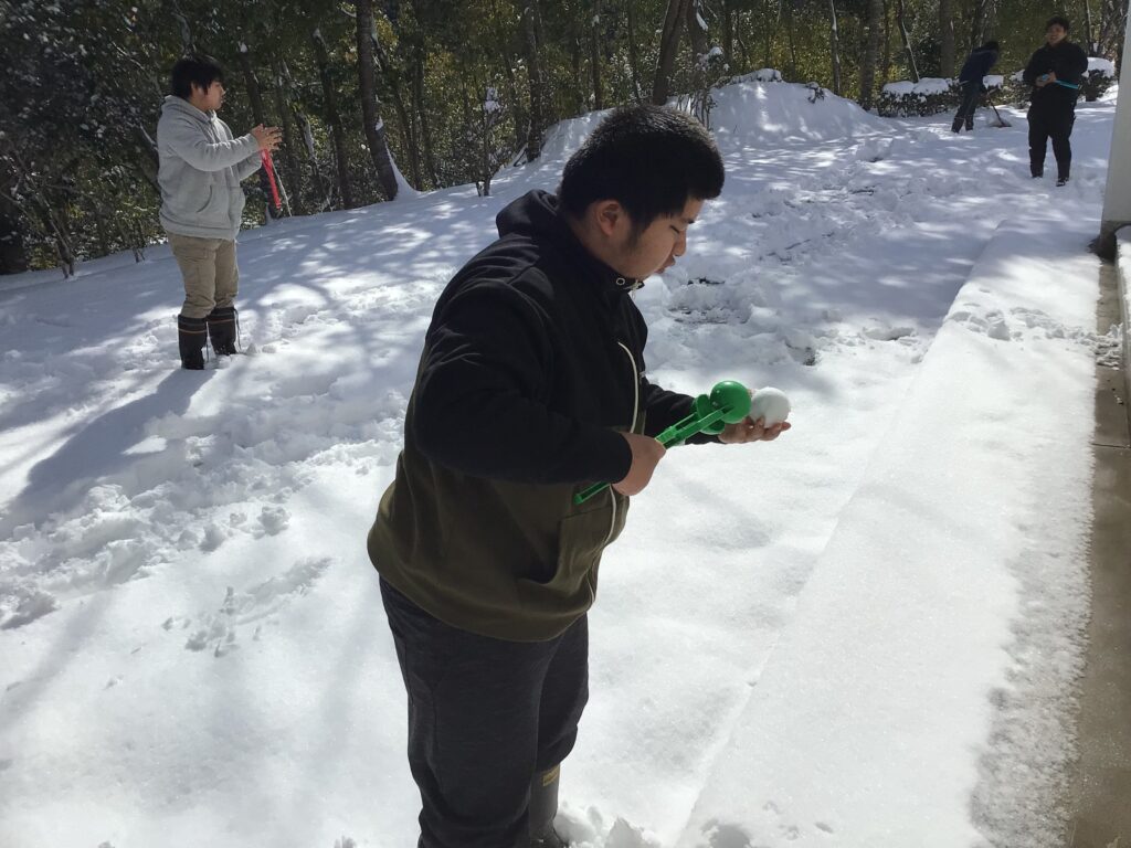 週末に掛けて大雪が降り、健康の森も真っ白です。雪が廊下にまで積もっており、スコップやほうきでみんなが安全に歩けるよう掃除してくれた生徒もいました。休み時間になると「待ってました!」とばかり外に出て、雪玉を作ったりそり滑りをしたりと、友達や先生と冬らしい遊びを存分に味わっていました。
