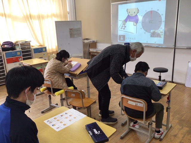 三週間に及ぶ後期実習が終了しました。1グループでは、室内での封入作業とともに屋外で大豆収穫にも取り組みました。「時刻を守って行動する」については、多くの生徒が時計を見て行動を開始したり、友達に促しの言葉掛けをしたりする様子が見られるようになりました。大切なのは、実習が終わって日常生活に戻っても、自分で意識をもち続けられるかということです。実習でできるようになったことをどう定着させていくかは、大きな課題の一つです。2グループは、「数のまとまりができたら報告し、一枚シールを貼る」といったシステムを理解し、落ち着いて作業に取り組むことを目指しています。三週目はサンプル剥がし作業が終わりに近付き、砂入れや空き缶分別等の作業にも取り組みました。日々繰り返すことで、活動時間を示すタイムタイマーによく注目し、終わりの音が鳴るまで根気強く作業するようなった生徒もいます。少し時間が掛かっても気持ちを切り替えて自分から作業を始めようとする生徒もいました。それぞれが自分の課題に向き合った実習でした。産業現場等の実習をやり切った生徒も含め、ご家庭で実習のがんばりを認めるお声掛けをしていただければと思います。そして成果や課題について12月の進路懇談で共有し、次の実習や卒後の社会生活について相談をしていきましょう。