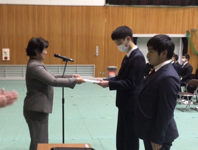 令和7年度第2学期の終業式がありました。校長先生が2学期の各部の取り組みを紹介され、「考える」「決める」「協力する」がそれぞれの学習活動でできていたことを話されました。各部の発表や表彰伝達もありました。校長先生の話にあったように「あいさつ」「役割・手伝い」「規則正しい生活」に心掛けて楽しい冬休みを過ごしてください。
