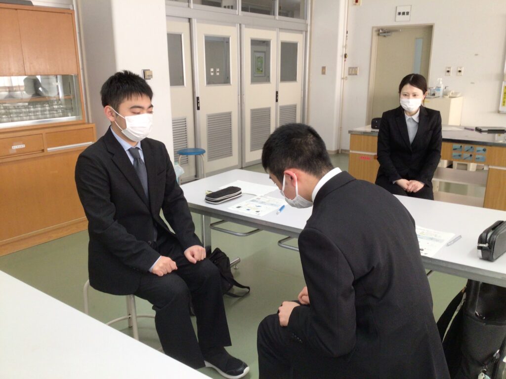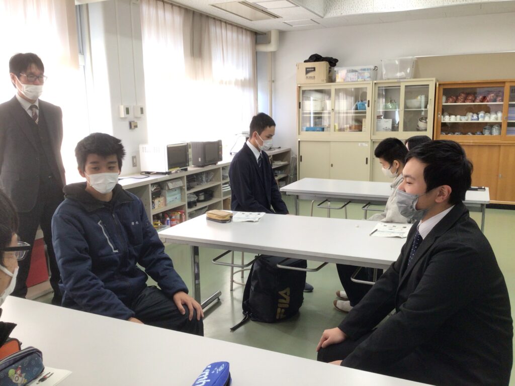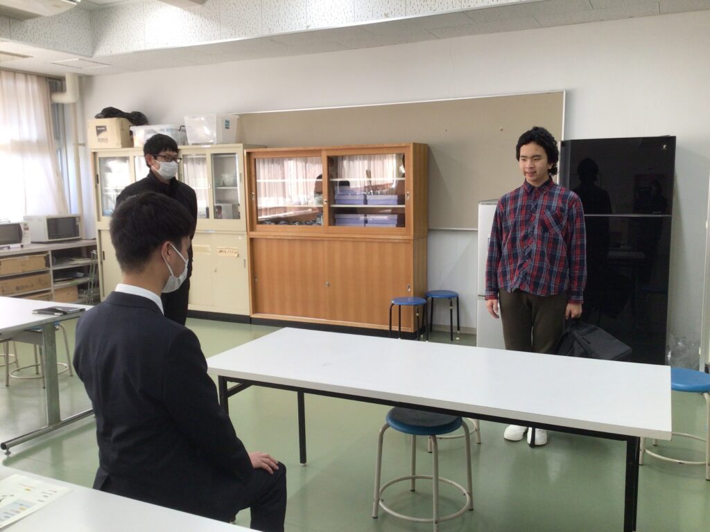 冬休みが明けて、一年のまとめである三学期がスタートしました。友達や先生との再会を楽しむのもつかの間、三年生はいよいよ進路決定の時期となり、校長先生や教頭先生との面接練習を頑張っています。三年生以外の学年も、事業所等の見学やジョブマッチングが控えているため、今日の総合的な探究の時間のテーマは「面接」でした、これまで学んできた接遇マナーの復習に加え、面接時や実習初日の挨拶の仕方、カバンの持ち方、着席する際の荷物の置き方など、モデルを見て真似したり役割交代をしたりしながら、繰り返し練習に取り組みました。