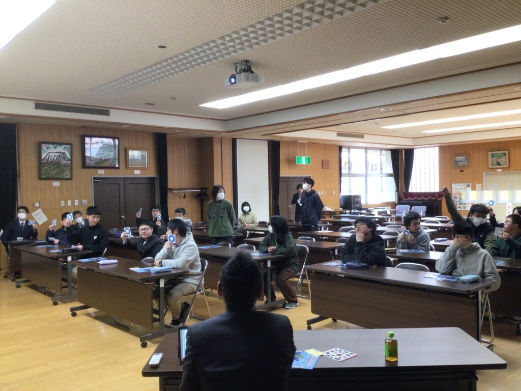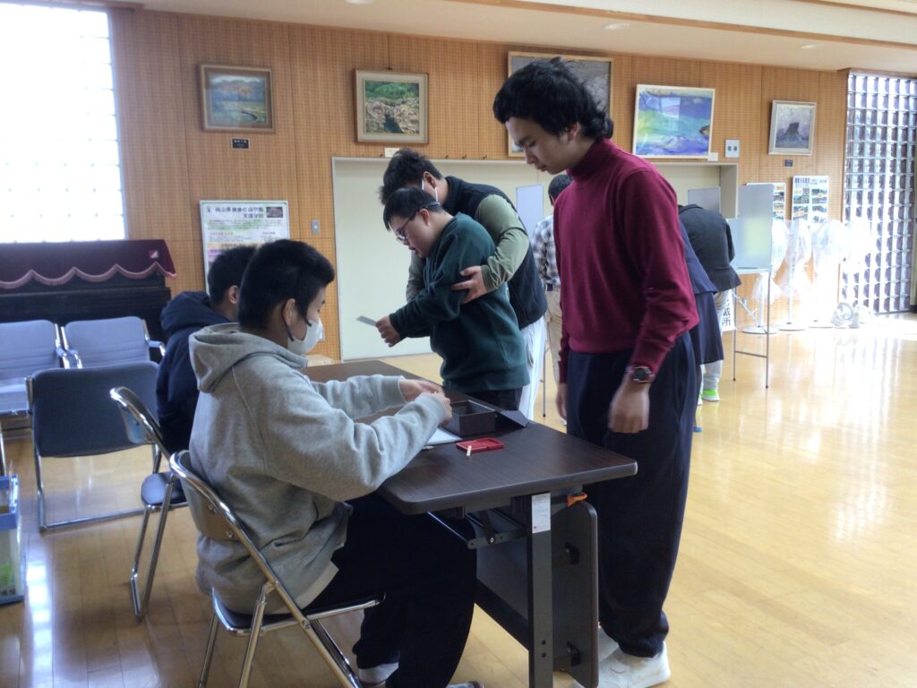 新見市の選挙管理委員の方に来校していただき、選挙の仕組みや決まりについて楽しく学びました。前半は、「入場券を忘れたら投票できない?」「投票用紙に間違えて書いた場合、直してもいい?」など、実際の投票で起きそうなケースについて、クイズ形式で考えました。後半は、本物の投票箱や記載台を使って模擬投票を体験しました。三名の仮想候補者の主張を聞き、自分の考えにあった候補者を一人選んで投票しました。高等部では、1月26日に生徒会選挙を予定しています。選挙管理委員を務めている生徒は、新見市選挙管理委員の方に教えてもらいながら、入場券を受け取ってハンコを押したり、投票用紙を手渡したりする経験をすることができました。生徒会選挙に立候補する生徒は、「自分が役員になってどんな高等部または学校にしたいか」「みんなの生活をより良くするため、何を頑張りたいか」をみんなに伝えることの重要性を感じることができたと思います。今回の学習を生かして充実した生徒会選挙になるようがんばりましょう。