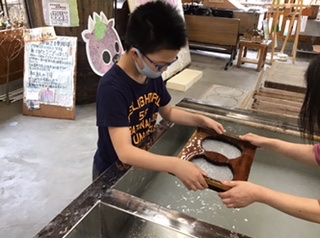 秋晴れの中、令和5年度収穫祭と作品展が行われました。今年度は、4年ぶりに一般のお客様もお迎えしての収穫祭と作品展となり、大変、盛り上がりました。小学部児童は、今日までに心を込めて作ったしおりをお客様や家族に配ったり、事前学習で計画・練習したように各作業班の製品を購入したりして、行事を楽しんでいました。中学部・高等部の生徒は自分たちの買い物だけでなく、これまでに作成した製品を販売しました。お釣りを間違えないように慎重に計算したり、丁寧に製品を扱ったりするなど、学習の成果をしっかりと発揮することができました。元気な「ありがとうございました!」が響き、笑顔があふれる収穫祭と作品展になりました。