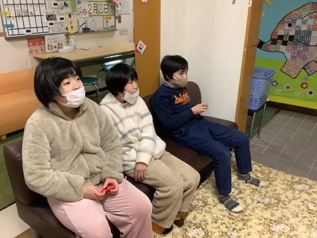 今日は午後から、火災を想定した避難訓練を行いました。寄宿舎で過ごす時間の避難訓練は、夜間に実施することが多いのですが、今日は、水曜日運営の時間を想定した訓練を行いました。放送が流れると、舎生は手を止めて指導員の指示を聞き、防災グッズを持って各棟で決められた一時避難場所に、部屋ごとに分かれて集まりました。その後、ヘルメットなどを被って避難体制を整えて、集いの広場に避難しました。余暇活動の時間を中断することになる舎生も多くいましたが、指示を聞いて気持ちを切り替え、いつもの『移動ペア』と手を繋いで、落ち着いて迅速に避難することができました。寒い時期になり、火器の使用が増える季節です。もしもの時の避難訓練はもちろんですが、安全に気をつけたストーブの使用方法なども学習していきたいと思います。