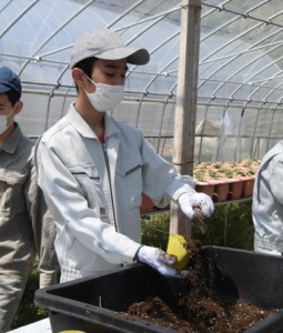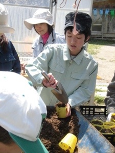 中学部3年生作業学習(H25.4.22) 投稿日時: 2013 年 4 月 22 日 投稿者: kenmorisien01 進級し、農産・園芸班に所属した3年生。まずは、育苗ポットの土入れ作業に取り組んでいます。道具をうまく使い、こぼさないように適量入れていく活動をとおして、将来の働く力をつけていきます。