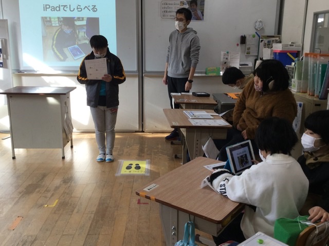 明日は小学部6年生の児童が中学部に体験入学にやってきます。中学部の2年生が中心になって中学部の紹介をする準備をしています。「どうしたら分かりやすいかな」と写真やイラストが入ったポスターを作ったり、タブレット端末を使って説明したり、分かりやすく知らせる工夫をしました。