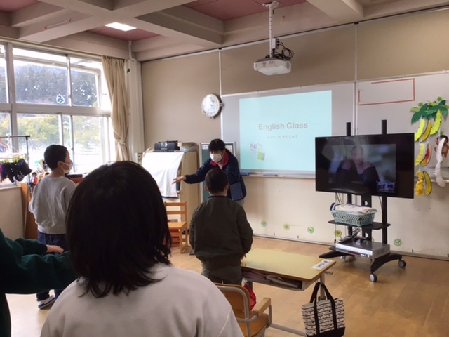 今日は、ALTの先生との最後の授業でした。残念ながら、直接会っての授業とはなりませんでしたが、ALTの先生と小学部の各学級と訪問生の自宅とを繋いで、遠隔での授業を行うことができました。今回は、「What animal do you like?(あなたの好きな動物は何ですか?)」の質問に英語で答える学習をしました。「I like 〜.」の文章に自分の好きな動物を考えたり、イラストから選んだりして、発表しました。ALTの先生やクラスや画面の向こうにいる友達にしっかりと伝えることができました。