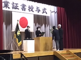 うららかな春の訪れを感じさせる今日、岡山県健康の森学園支援学校の卒業証書授与式が挙行されました。小学部9名、中学部2名、高等部8名の計19名が校長先生から卒業証書を授与されました。校長先生からは、健康の森の恵まれた環境の中で「心いっぱい体いっぱい」学習して身につけた力を活かして、これからも多くのことに挑戦してほしいとはなむけの言葉が贈られました。卒業生の別れの言葉では、仲間と共に学校行事に取り組んで団結力を実感したことや寄宿舎での生活でお互いを思い合って生活することを学んだことなどが話されました。卒業生たちは健康の森で学んだことや仲間との思い出を力に笑顔を忘れずにそれぞれの場所で輝いてくれることでしょう。