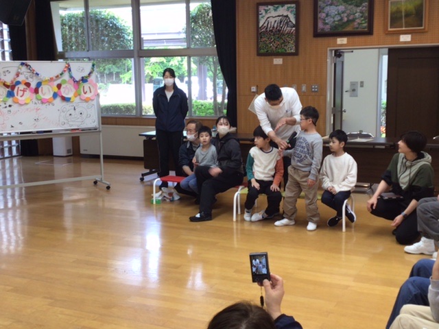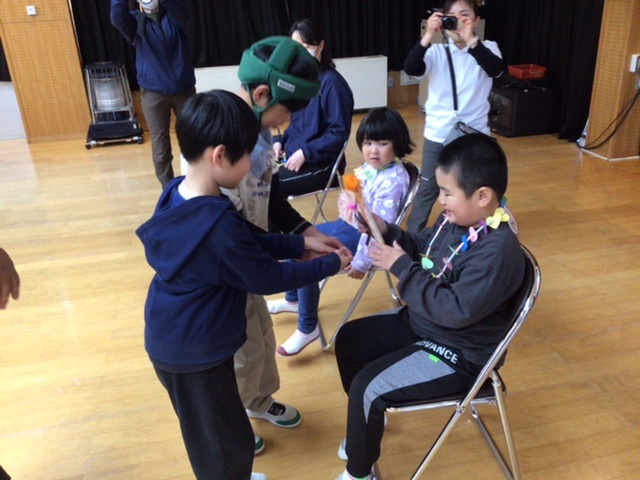 6年生が計画と進行を務め、小学部全員で「新入生歓迎会」を行いました。6年生の「はじまりの言葉」と教頭先生のお話で温かくスタート。自己紹介では、6年生から1年生までがそれぞれ自分の名前と好きなものを元気に発表し、お互いのことを知る素敵な時間となりました。全員で楽しんだゲーム「じゃんけん列車」では、どんどん列が長くなり、最後には全員がつながる大きな列車が完成!その後のダンスもみんなで大いに盛り上がりました。最後は、2~6年生が心を込めて作ったプレゼントを1年生に手渡し、6年生の「おわりの言葉」で会を締めくくりました。1年生の皆さん、これから仲良く楽しく過ごしましょう!